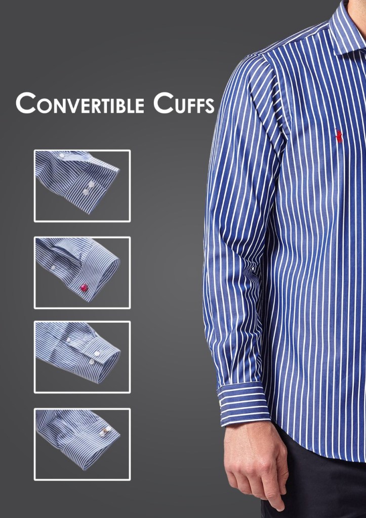 Convertible cuff can be worn with buttoned for a more casual look or with the cufflinks. The convertible cuff can take you on a smooth drive from a morning office event to an evening party with ease. These cuffs are alesser known cuff that has rose to popularity within a short span of time.