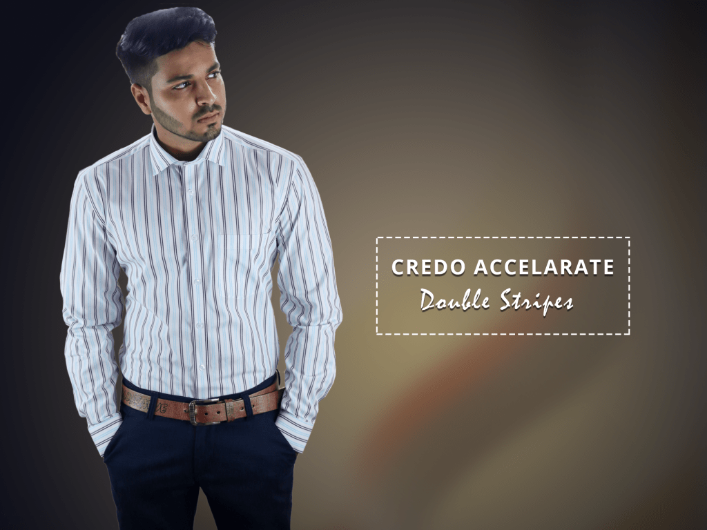 These type of stripes goes well with different types of denim, trousers or even shorts with the shirt tucked in to get a sharp look which is an addition to your attitude. You should try the premium collection of multi-track stripe shirts for men of CREDO ACCELERATE.